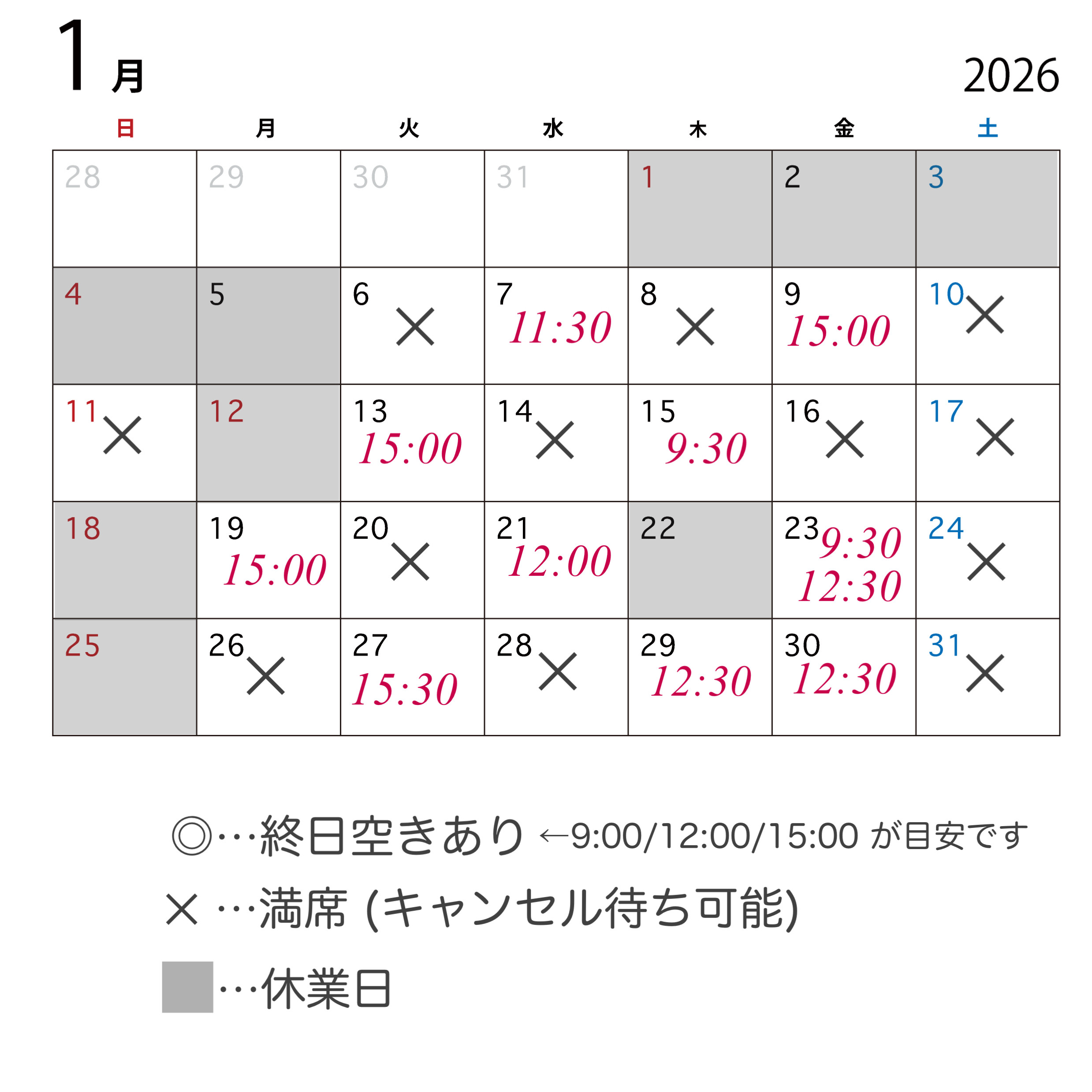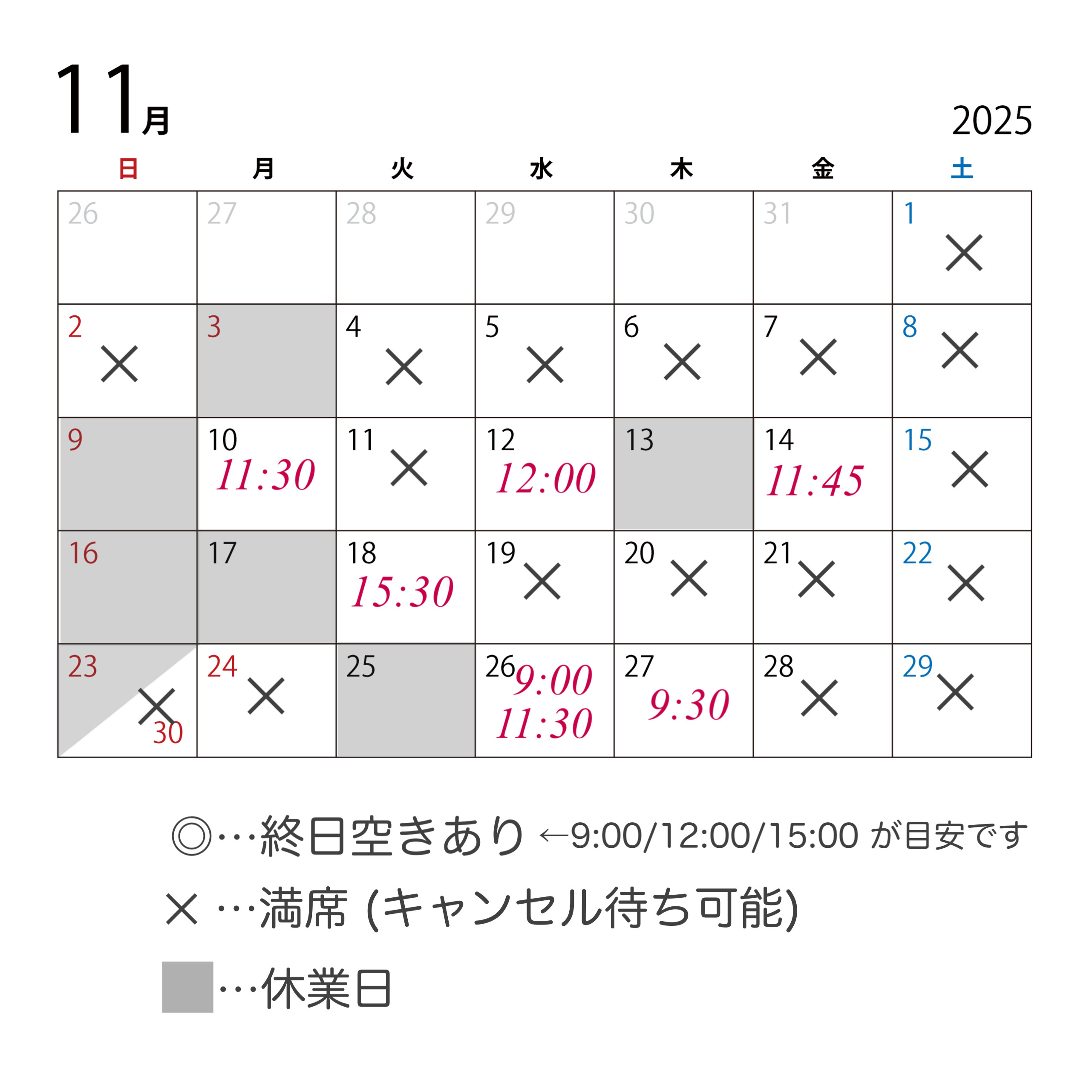 土曜日枠は常にリピーター様の次回予約で埋まっているため、現在ご予約の受付を停止しております。